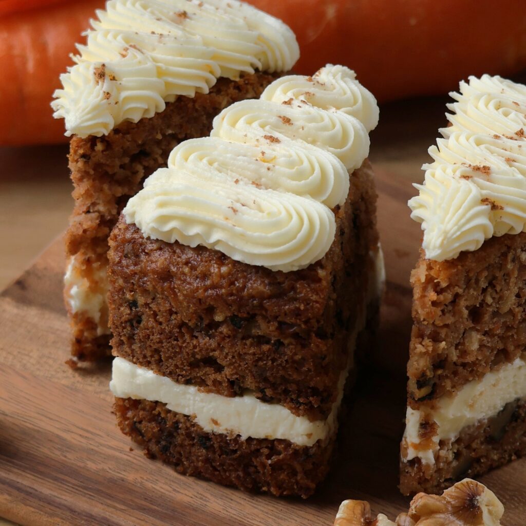 米粉のふんわりとした食感にナッツの口当たりが楽しい一品。相性抜群なココナッツとシナモンの香りがふわりと広がります。上にのせたフロスティングクリームの淡い酸味が、有機にんじんの自然な甘さと絶妙に溶け合う一切れ。「グルテンフリーだから」ではなく、「おいしいから」また食べたくなる、そんなケーキが誕生しました。